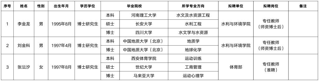 经考察通过,现对我校2025年第十一批拟聘专任教师名单公示如下: