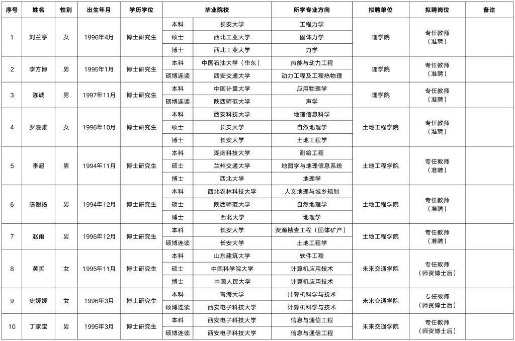 经考察通过,现对我校2025年第十二批拟聘专任教师名单公示如下: