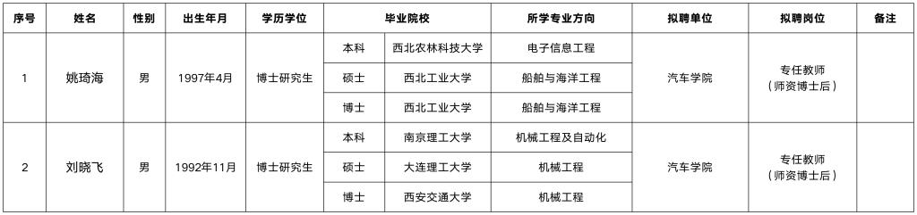 经考察通过,现对我校2025年第十六批拟聘专任教师名单公示如下: